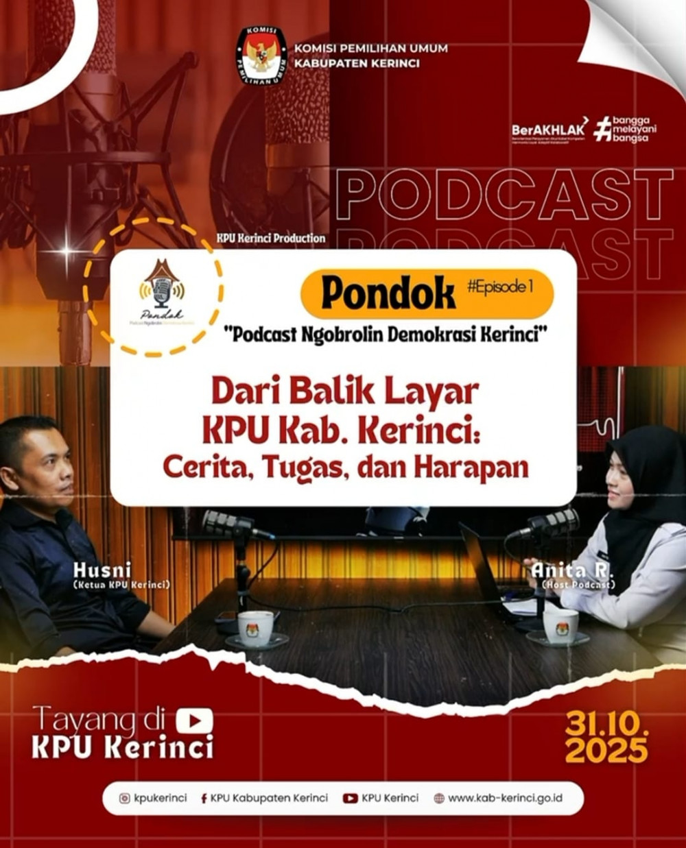 Episode perdana bertajuk “Dari Balik Layar KPU Kerinci: Cerita, Tugas, dan Harapan” ini menjadi langkah awal KPU Kerinci dalam menghadirkan ruang dialog santai dan edukatif seputar kepemiluan. Melalui podcast ini, KPU Kerinci berupaya memperkenalkan tugas, peran, serta semangat kerja lembaga dalam menjaga demokrasi dan meningkatkan partisipasi masyarakat